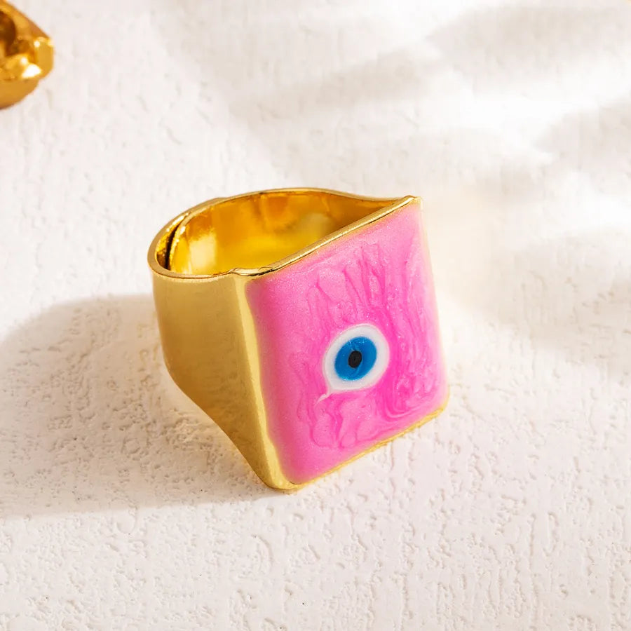 Adora London Pink Evil Eye Ring 18k Gold Plated